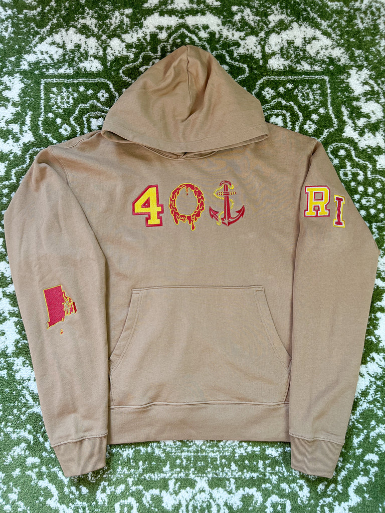 RI map on right arm: Burgundy fill/Yellow gold outline