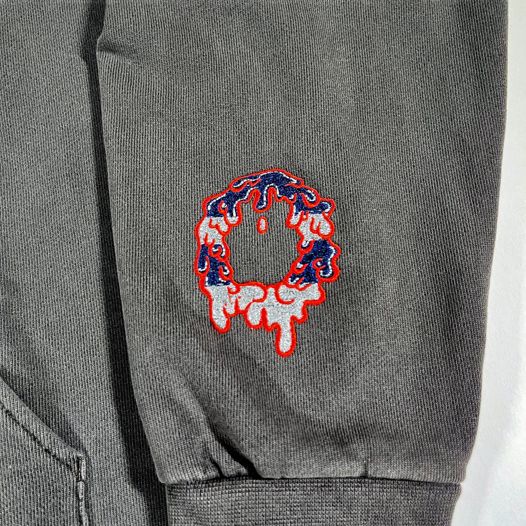 🩸5x7 inch OG “O” logo embroidered on the center chest: Navy blue fill/Cloud (silver) outline