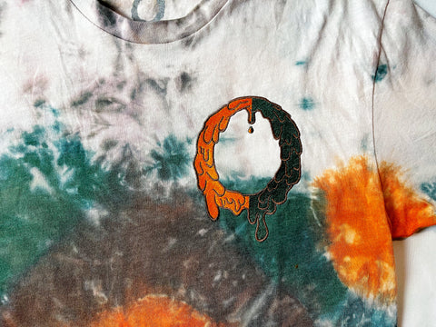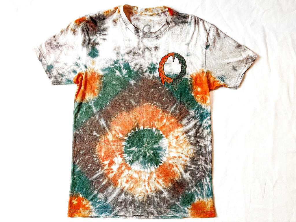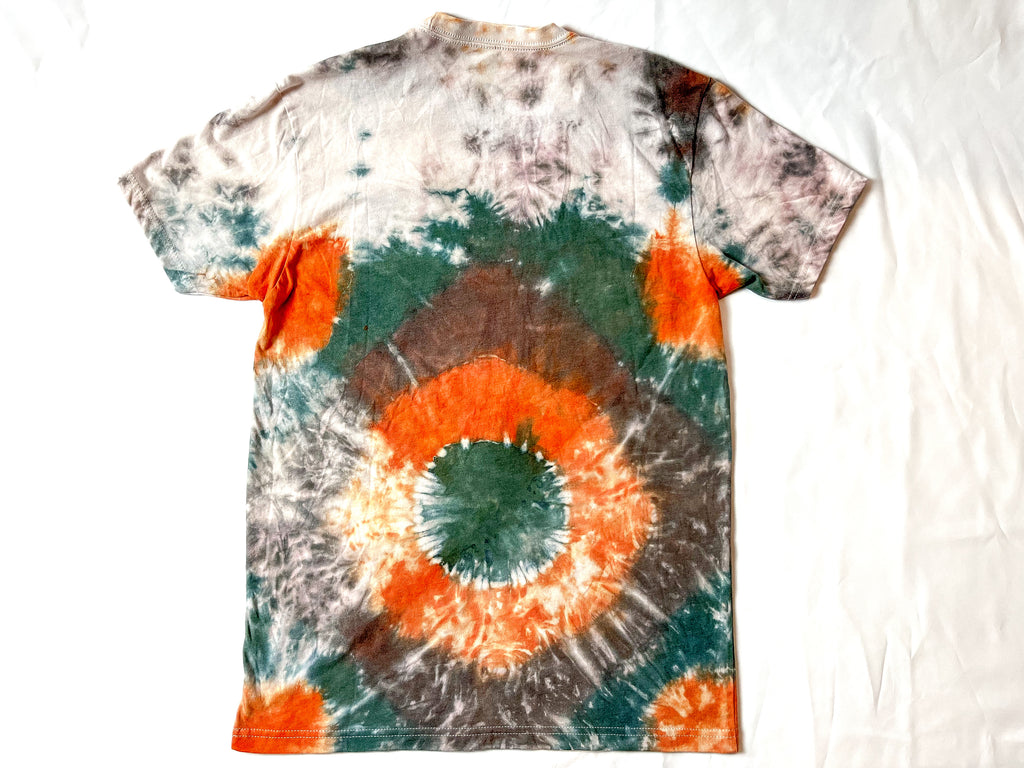 Hand dyed brown/sunshine orange/dark green T-shirt