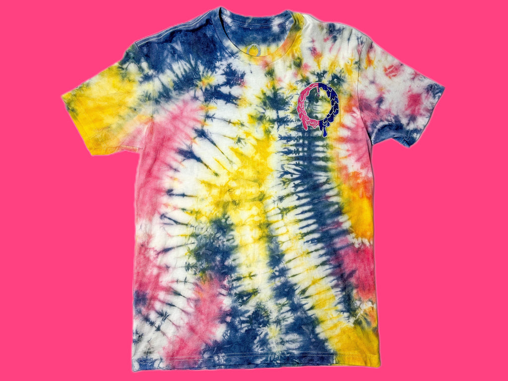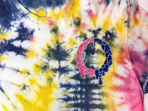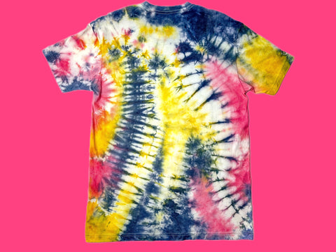 Hand dyed navy blue/petal pink/lemon yellow T-shirt