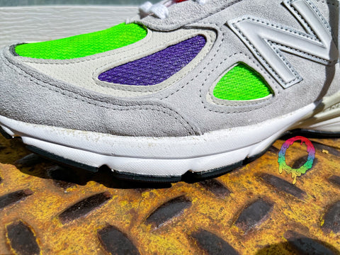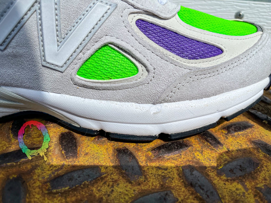 Custom hand painted “Joker” themed New Balance 990v4 🃏. / Base sneaker was the M990NC4.