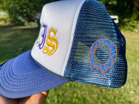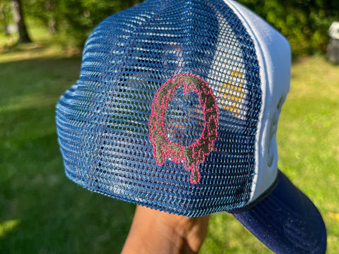 Limited edition navy blue/white OE trucker hat.